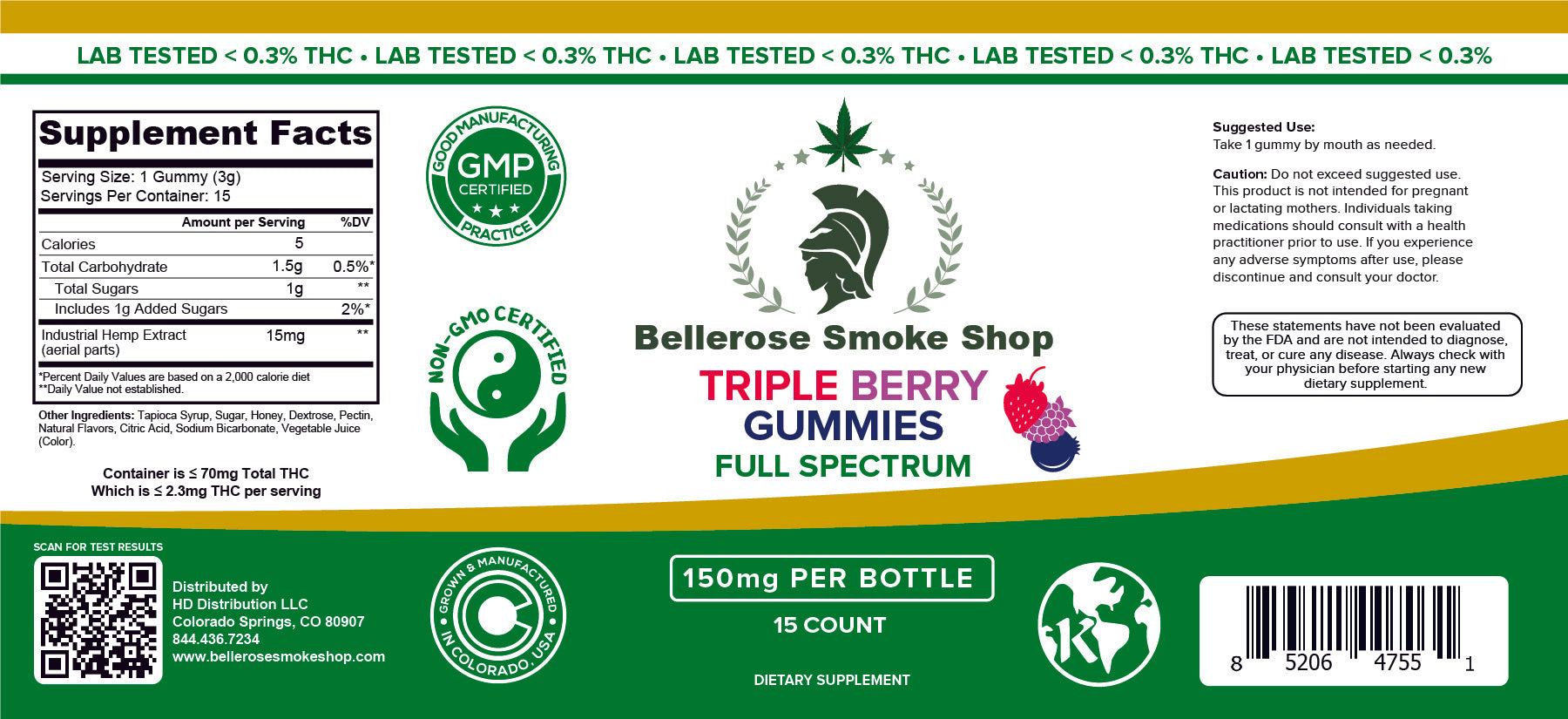 Tapioca Syrup, Sugar, Honey, Dextrose, Pectin, Natural Flavor, Citric Acid, Industrial Hemp Distillate, Sodium Bicarbonate, MCT Oil, Color, Sunflower Oil, Sodium Citrate